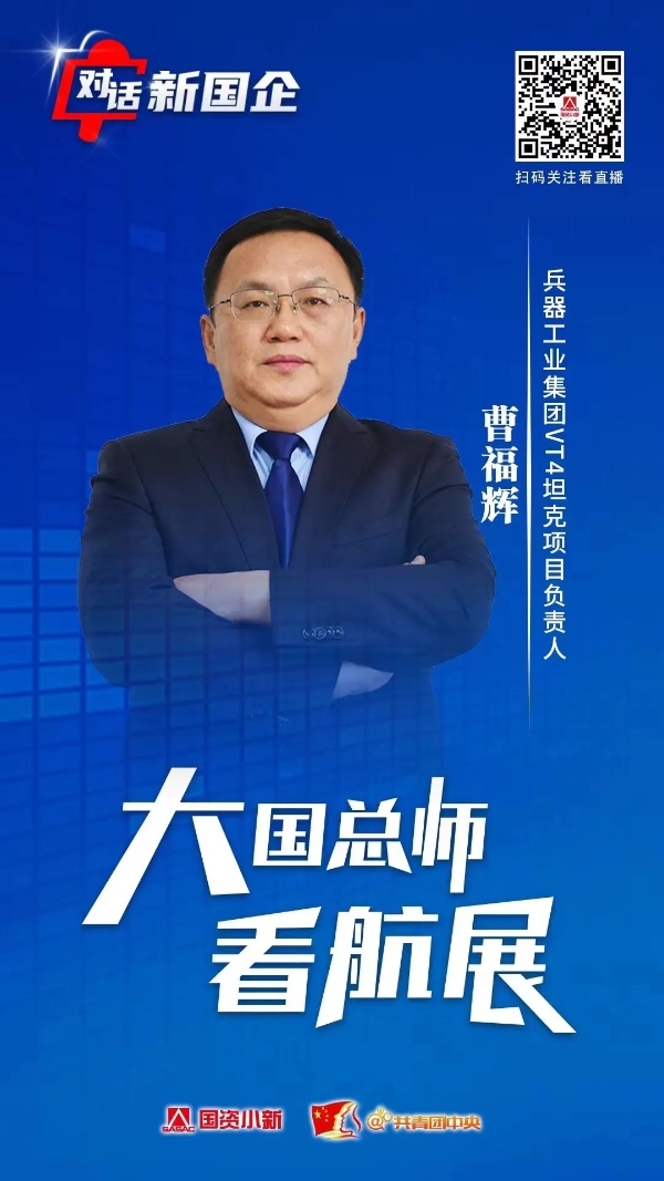 11月8日,國務院國資委新聞中心聯(lián)合共青團中央宣傳部共同推出“對話新國企·大國總師看航展”系列訪談節(jié)目。中國兵器工業(yè)集團一機集團副總經(jīng)理、VT-4坦克項目負責人曹福輝作為訪談嘉賓,接受視頻連線采訪,介紹了兵器工業(yè)集團有關參展情況,并就VT-4坦克的最新研發(fā)成果和地面作戰(zhàn)裝備體系解決方案等進行了介紹。