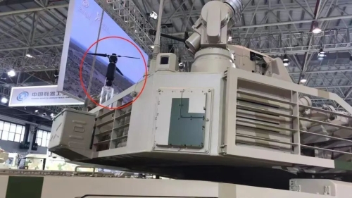 (圖為VT4A1重型主戰(zhàn)坦克加裝的車載無(wú)人機(jī)系統(tǒng)。 王鵬宇攝)